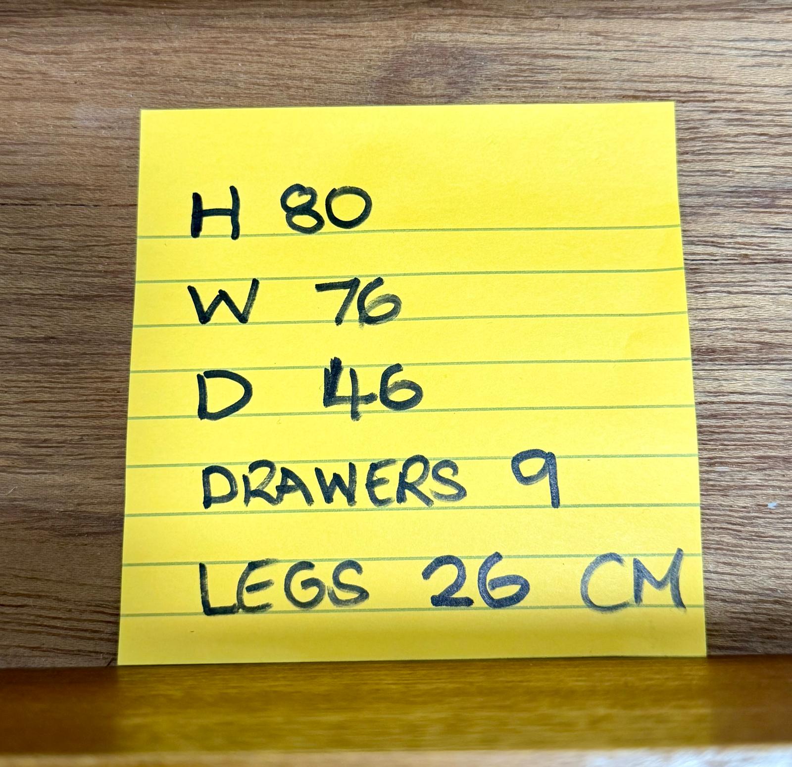Stylish four drawer chest with wooden handles on shapely woiden legs. The grain is very nice and It’s very clean with just a few small imperfections commensurate with age. All drawers run smoothly.