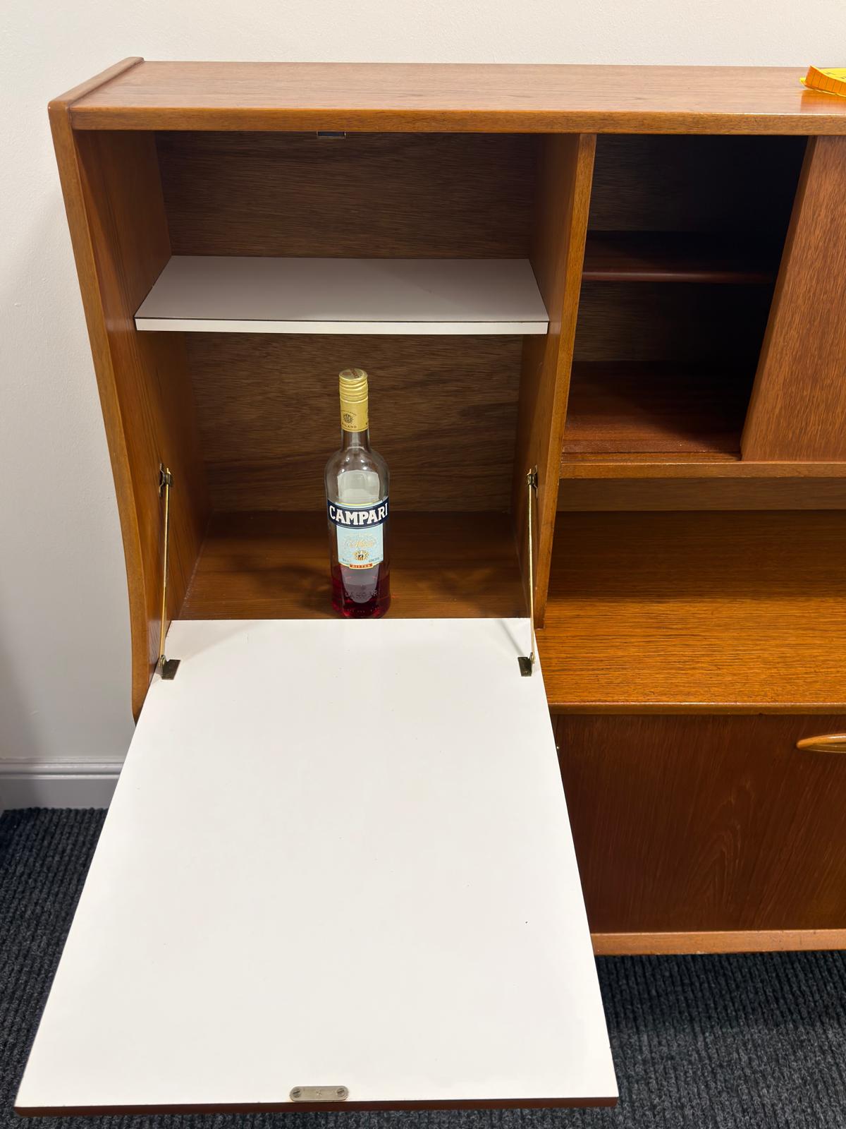 A very versatile unit with lots of space, 2 cupboards with a shelf, 3 drawers & a drop down for drinks.